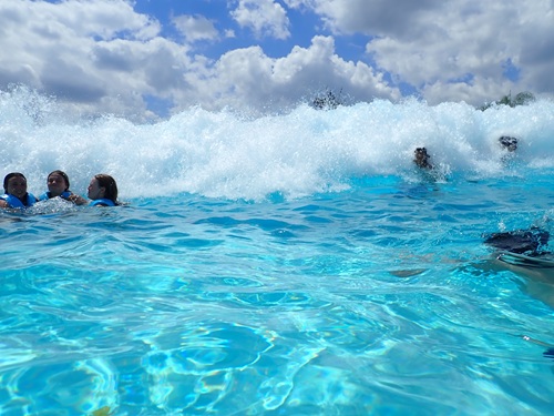 | 大波プールで疲れたので、流れるプールでまったり | ||