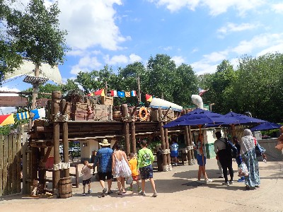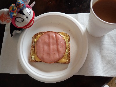 | 8:52 動物さんたちの朝食風景を眺めながら、小悪魔特製ハムチーズサンド(食欲無くてオープンサンドにしてもらった) この日はウォーターパーク予定だったのだが、朝からどんより、、気温もさほど暑くない。。 だが、この日を逃すともうプール日和は無いかも? と意を決し、 | ||