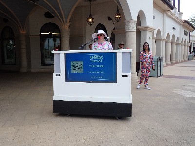 | こちらのストリートピアノはハイテク 液晶画面で宣伝も | ||