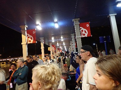 | 21:39 バス停到着・・・あっちゃ激混み、当然1台目には乗れませんで。。。 でもね 満席で次のバスに積み残しされた〜は、 必ずしも悲劇では無い。。 何故なら、オールスターの場合、AKG以外は何処も遠く 帰りのバスは座りたい が、1台目だと余程前に並んでないとまず座れない 積み残しで2台目ならある程度まで座れる 時々疲れた家族連れは1台目が座れないと判ると 乗らずに2台目を選んでいる なので、積み残しは『座れる、ラッキー』とポジティブ思考にする | ||