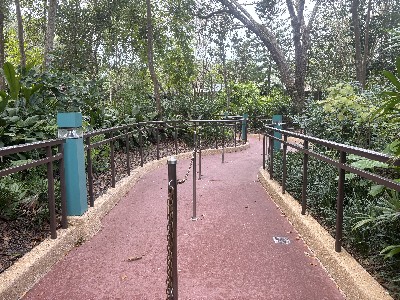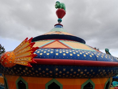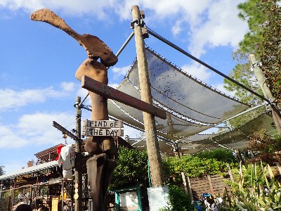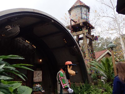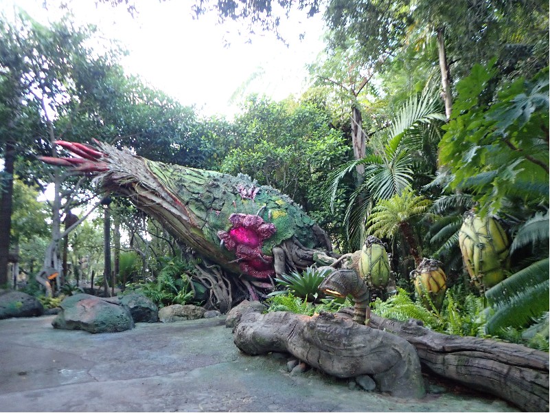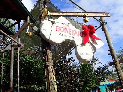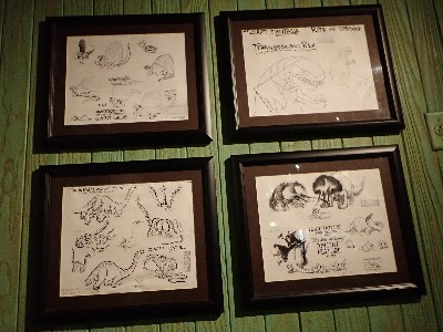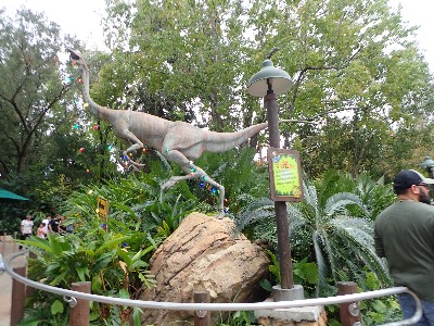 | (→epcot777さんのブログによれば) ↓epcot777さんの記事引用してます ドナルドのご先祖様、2本足の羽の生えた恐竜(そのキャラは絵のみです) を発見したのがドナルドで記念にこのエリアができました、出資者はボンドレイク教授。。。なんだそう | ||