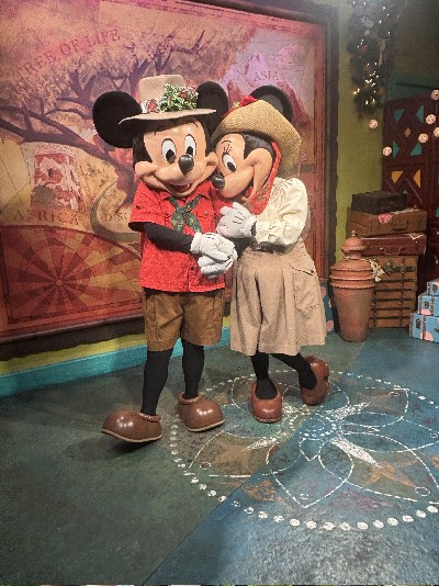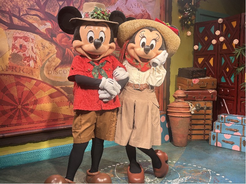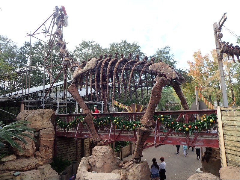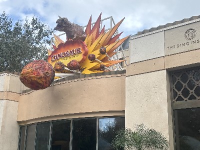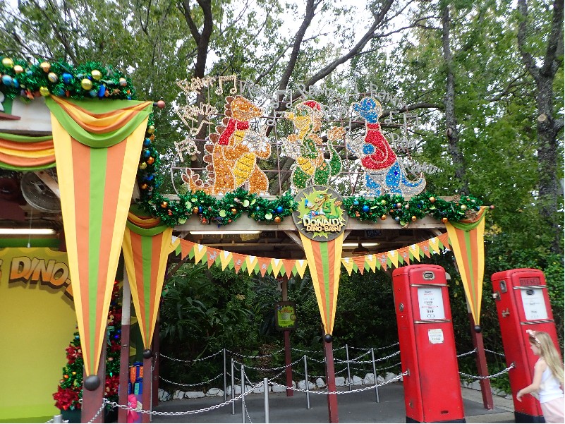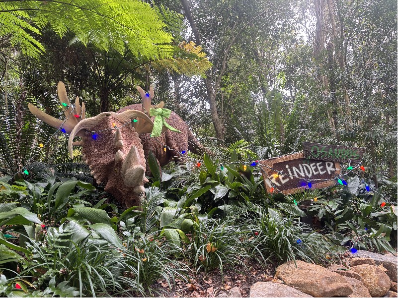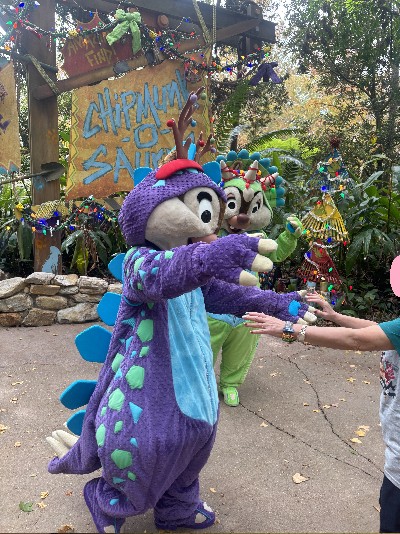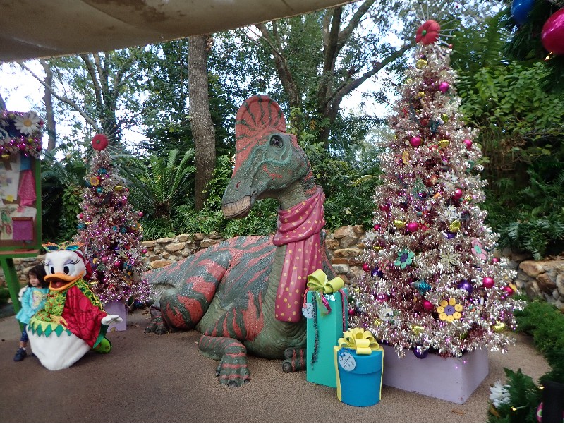 | 旅の後編でお会いする現地のインフルエンサーの方からダイナソーエリアのリニュは 先ずゲームコーナーやトリケラスピンなどのエリアから始まるので 『2025年1年間はダイナソーとグリは無事』とな そしてコレを書いてる2025年9月、とうとうダイナソーエリア全体の工事が発表された (→d.postさんのブログ参照) それによるとダイナソーエリアでのグリは2026.2.1まで それ以降は別の場所でのグリとなる アトラクションとレストランは工事に入り閉鎖とのこと 2025年の9月に再度此処を訪れるのでノーマル恐竜コスには遭えるな てこって、チープな飾りでホリデー感を醸し出していたホリデー・チデ・ザウルスとのグリは 実質この旅が最後となった ※なお、詳しい友人によればホリデーコスは年末まで、年明けはホリデー無いそう | ||