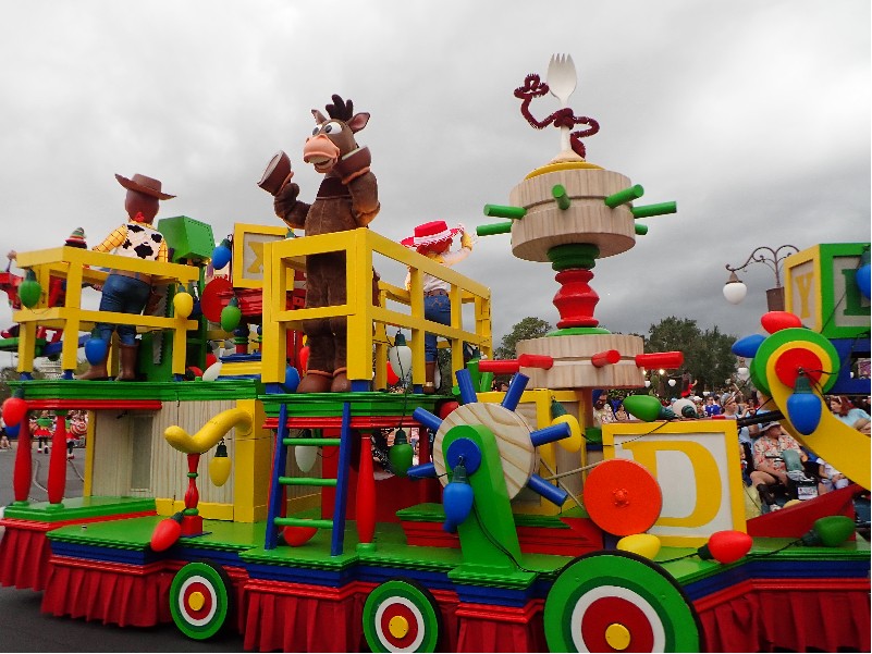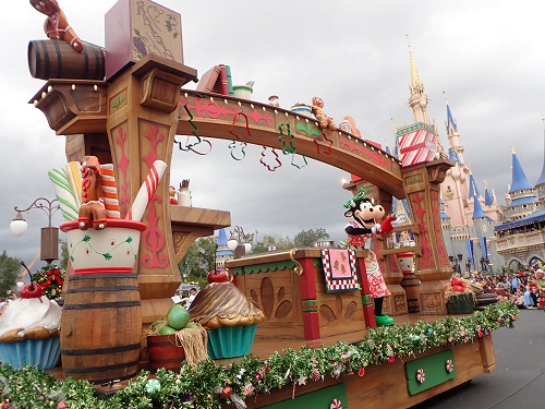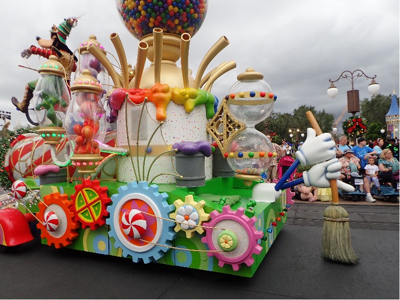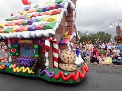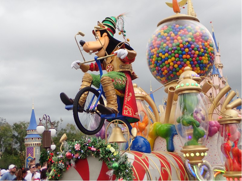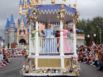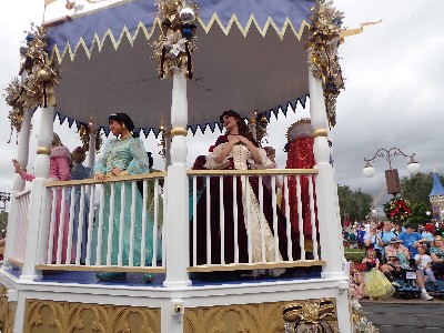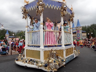 | 雨が降りそうだからか、プリンセス達は豪華なフロートではなく、てんこ盛りフロート | ||