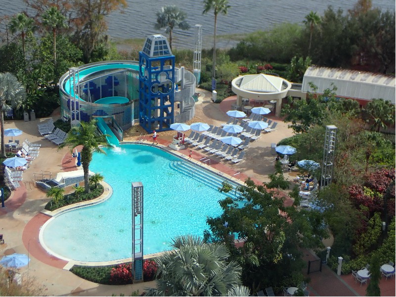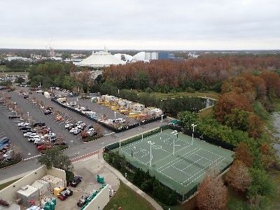 | 21:15 シャワーしてカリブビール♪ ちなみにお部屋はコチラでした(赤丸) レイク・ビューなのにパークが見えてホントラッキー♪ |