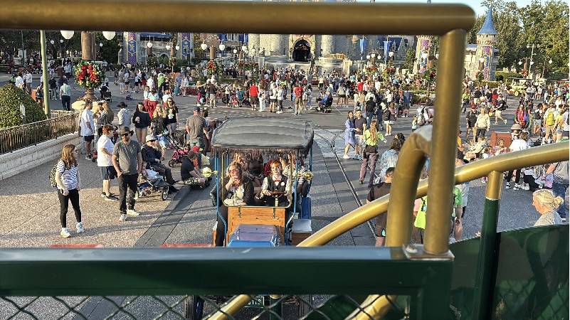 | 17:10 暑いし混んでるのでピープルムーバーで涼み カルーセル・プログレスで休み 17:50 城前来てみた |