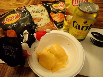 | この上段が1リットルのボトルだったのよ! 良〜く見りゃ判るんだけど、値札も貼って無いし、騙されてた〜〜〜 ミラーライト6缶パック$18.00、オレンジジュース$6.99、歯磨き粉$1.99、DVC△20%でTotal $26.71.- アルコールは割引効かず、歯磨き粉は旅行用ではなく通常のモノ(半分ぐらい残ってた)を持参したが 流石の長旅で底を尽きた、、ので日本なら100均で売っていそうなコルゲートを購入 当時の円換算で¥300えんえんえん〜〜〜 |