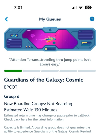 | 12:16 いつも残念なファストパスだったジャーニー イントゥ イマジネーション ウィズ フィグメントが20分待ちだって! こりゃエプコット相当混んでる ヾ(- -;)コラコラ |