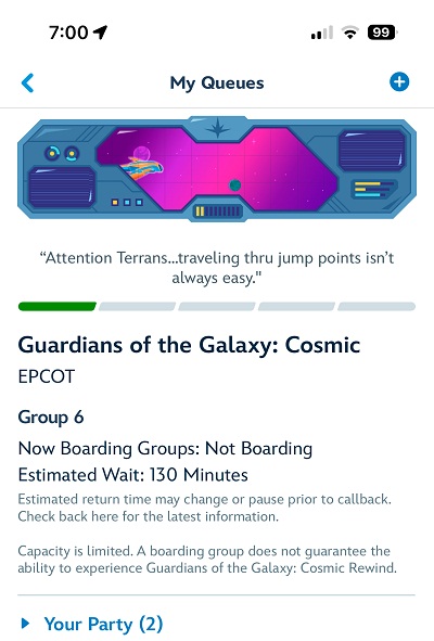 | DVCラウンジは20分待ちと云われ断念 15:16 スペースシップアースも激混みで乗れず |