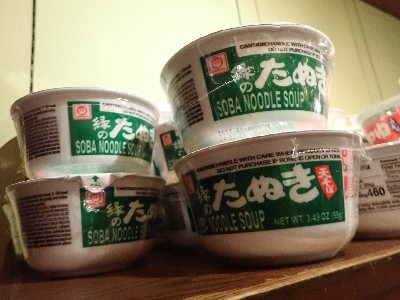 明日帰国するのに余ったカップうどんと蕎麦をお世話になったKIMIKOさんに献上