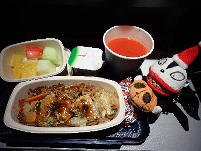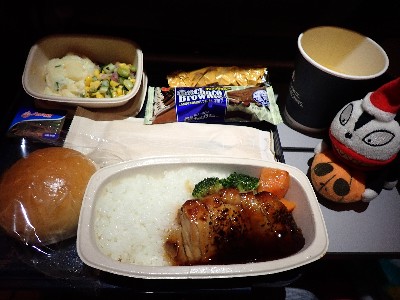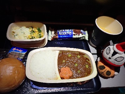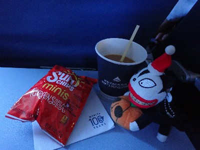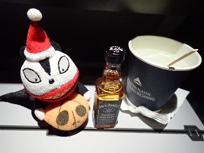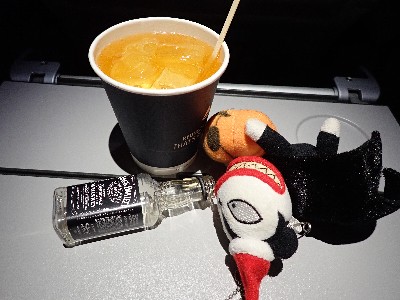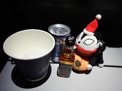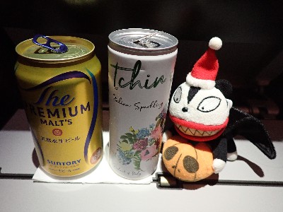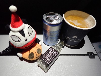 | まだ到着まで9時間以上。。。てこって食後はひたすら呑む | ||