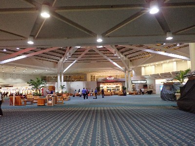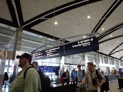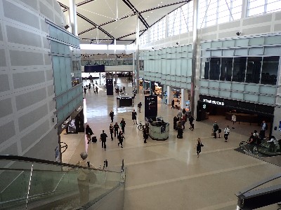 | やっぱ外へ出られるんだわ。。。構内に戻りセキュリティを抜けようとすると・・・此処は混んでるから上の3階へ行けとな | ||