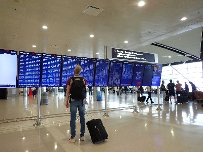 | 乗継地で大事な案内板、、、実際今回のオーランド行、当初指定されたゲートはA-17だったが、A-7に変更なってた | ||